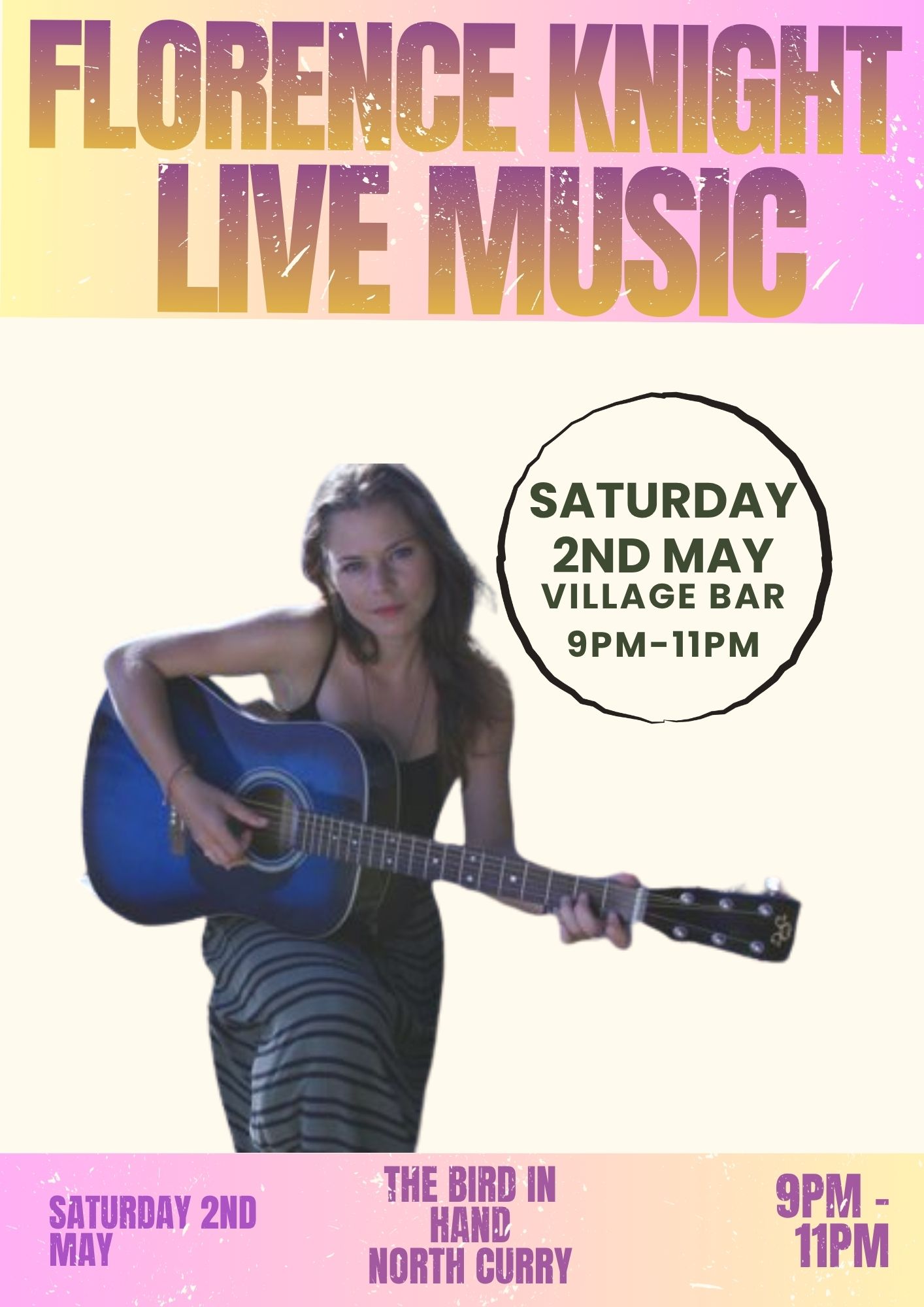 Written by Bird In Hand on 30 March 2026. Posted in Events Blog. SATURDAY 2ND MAY - FLORENCE KNIGHT Hits: 13 Prev